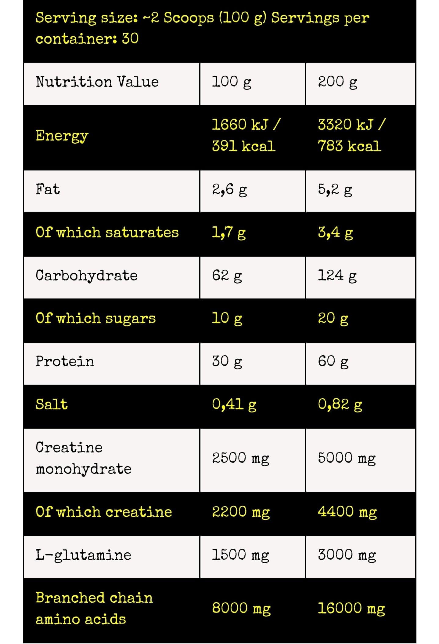 Creatine & Glutamine: 2.5g Κρεατίνης και 1.5g L-Γλουταμίνης ανά δόση.