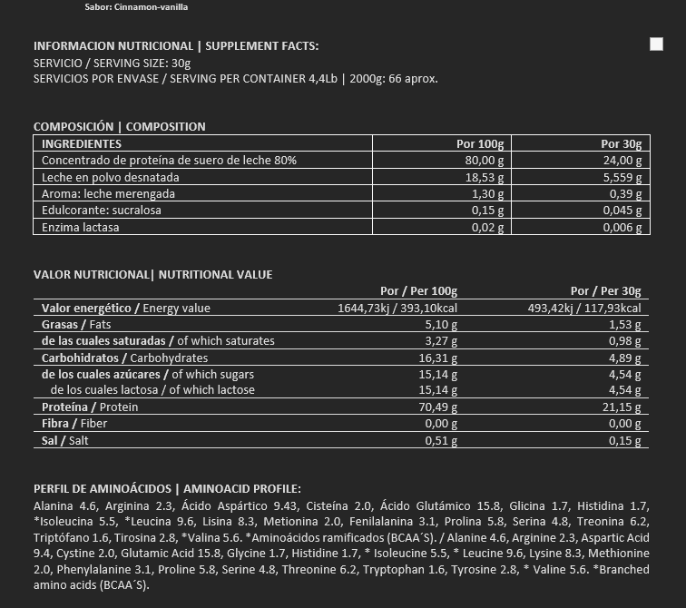 Με Lacprodan® SP 8011 Ins από την Arla Foods Ingredients® – μία από τις κορυφαίες πρώτες ύλες παγκοσμίως – εξασφαλίζει άμεση απορρόφηση, κορυφαία καθαρότητα και πλήρες προφίλ αμινοξέων για μέγιστη μυϊκή ανάπτυξη, αποκατάσταση και ενέργεια.